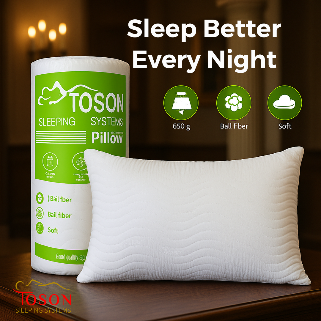 Enjoy premium comfort every night with the Toson Soft Pillow — filled with ultra-fine fiber balls